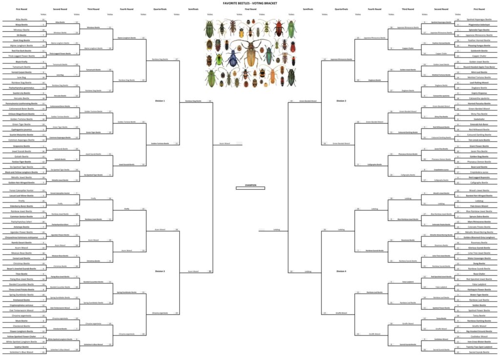 We’ve reached the Final Round of our Favorite Beetles Voting Bracket! It’s down to the Acorn Weevil and Ladybug!
