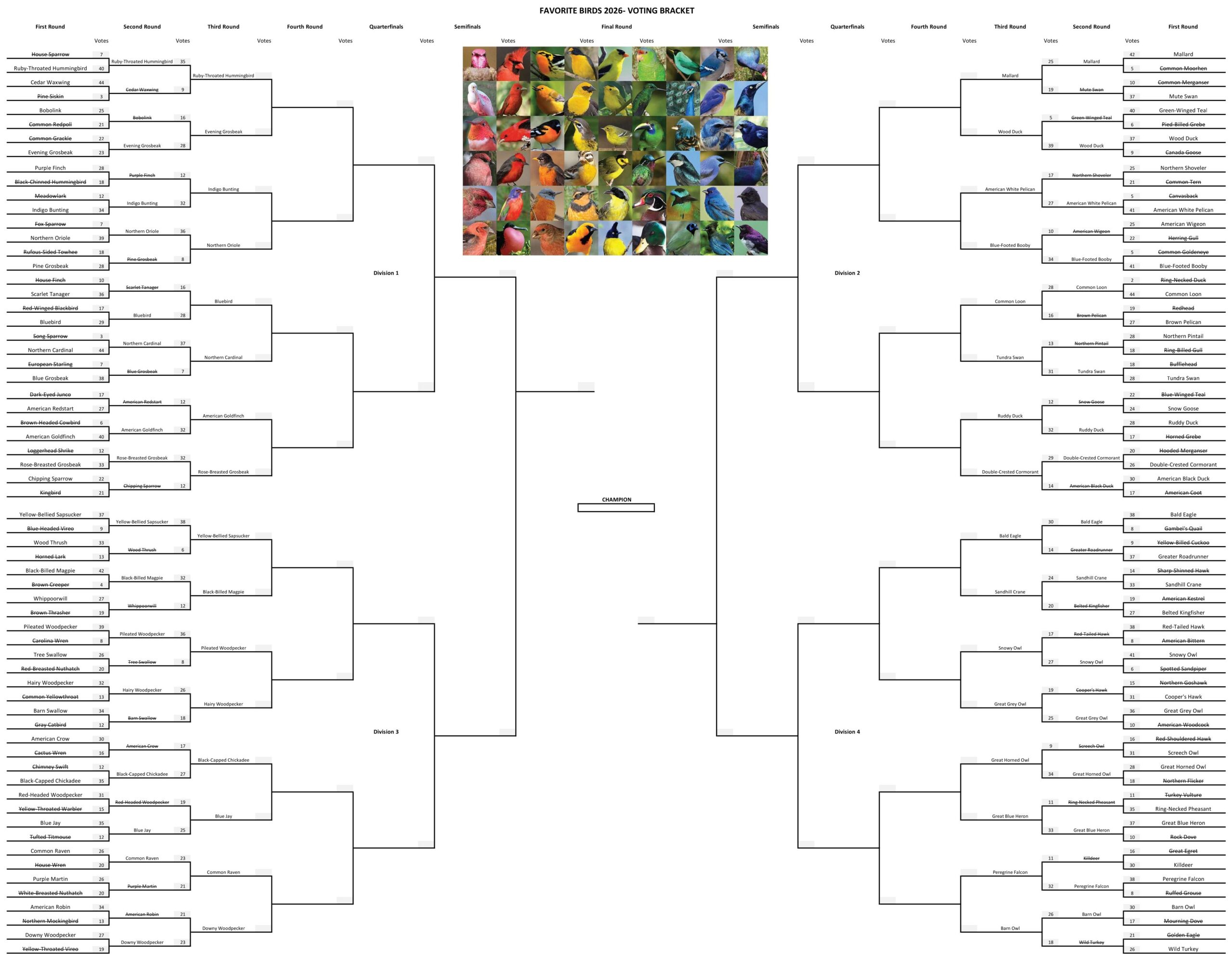 We’re moving on to Round Three of our voting bracket about Favorite Birds of North America!