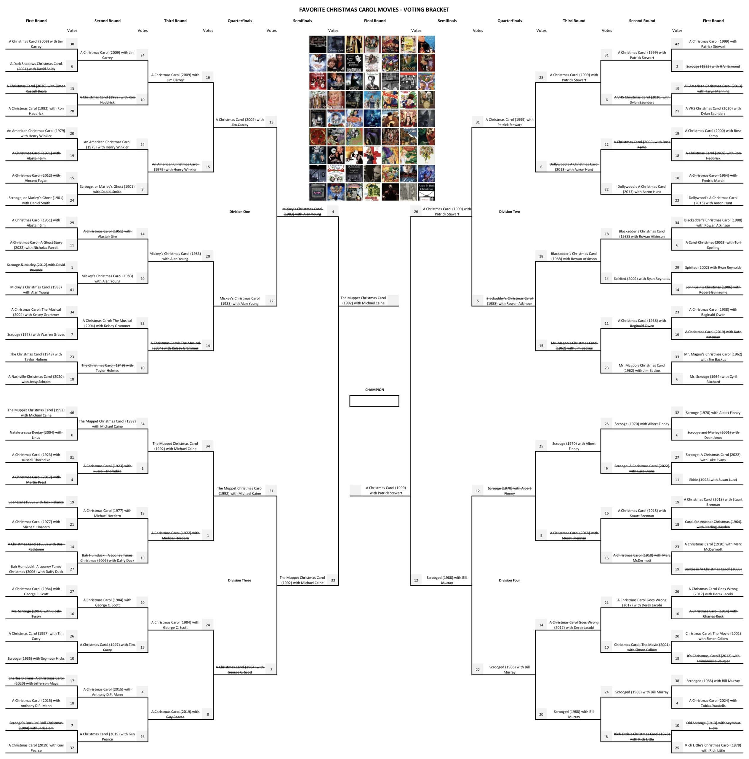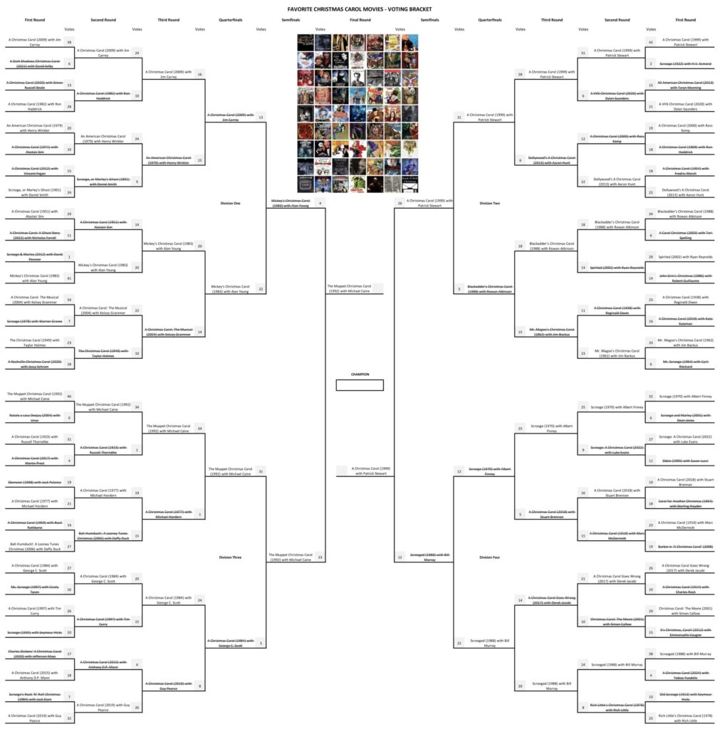 We’ve reached the final round of our Favorite Christmas Carol Movies voting bracket!