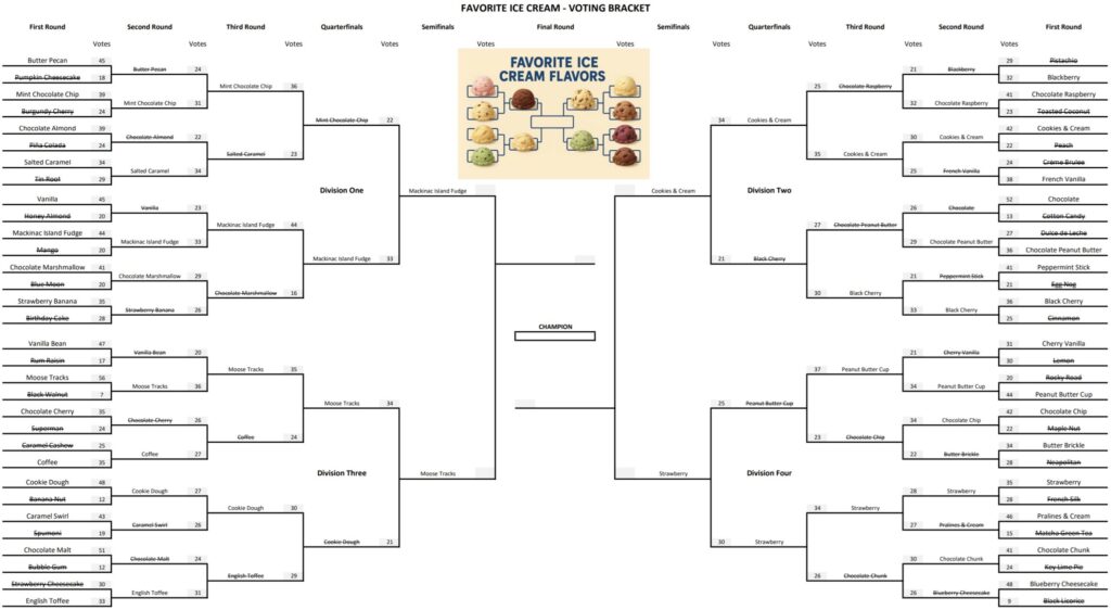 We’re down to the final four Favorite Ice Cream Flavors in our voting bracket!
