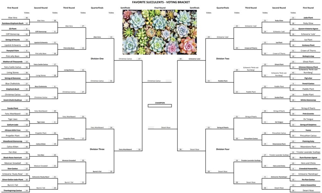 We’ve reached the final round in our voting bracket for our Favorite Succulents!