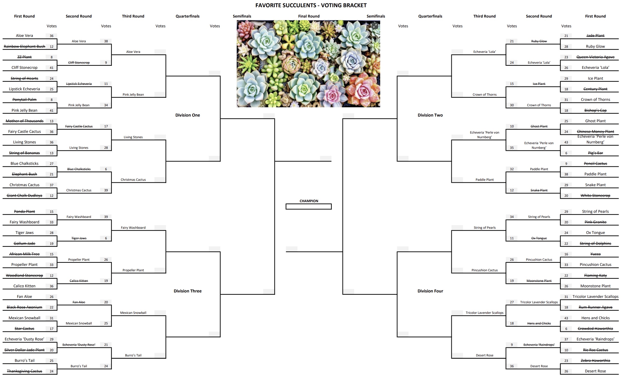 We’re on Round Three of our voting bracket topic for our Favorite Succulents!